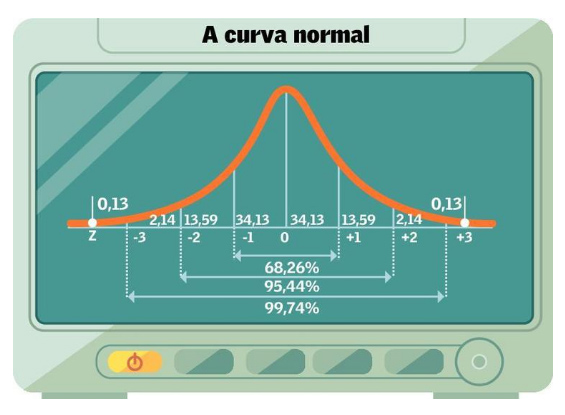 Nos exames de imagem, cheios de palavras difíceis e expressões técnicas, sempre vem a dúvida: “Dr, esse achado aí no meu fígado é normal?”. Médicos utilizam a palavra “normal” para descrever um conjunto de dados que, quando apresentados graficamente, formam uma figura que parece um sino, a curva normal (veja a figura). Essa curva e suas propriedades foram descritas nos séculos XVIII e XIX pelos matemáticos Pierre-Simon Laplace e Carl Friedrich Gauss. A distribuição dos valores na curva apresenta boa correlação com os fenômenos biológicos e médicos, permitindo estimar a porcentagem de indivíduos com cada valor da variável analisada.